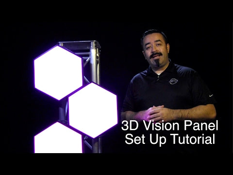 The 3D Vision Plus is a hexagonal shaped LED panel with stunning 3D visual effects when used in multiples. Designed for nightclubs, lounges, bars, entertainment centers, stages and mobile entertainers. The 3D Vision Plus has a 4-Button menu system with a digital display. It may be controllable via DMX using a DMX to RJ45 adapter. It can also be used with EZ Kling interface for Artnet control. Link multiple panels together via locking power input/output for power and with RJ45 ports for data linking. Panels lock together with an easy to use quick release panel lock. Rigging bars are also available for dead hang installation (M10 thread on the rear for a Pro Clamp so units can easily be fastened to truss or 2-inch pipe).