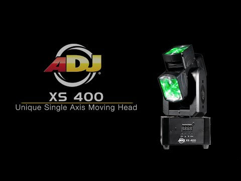 The ADJ XS 400 is a new revolution in moving lights. It features a single Axis head that has continuous 360 degree tilt rotation. The XS 400 utilizes 4 x 10-Watt LED that project sharp beams of light. Its compact size and lightweight makes it ideal for mobile entertainers, small club and bars, roller rinks, bowling centers or any mobile production.