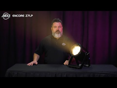 Part of ADJ’s Lime Par series of LED fixtures, the Encore Z7LP is a compact and versatile professional par fixture. Its motorized zoom function allows the beam angle to be adjusted remotely via DMX between a concise 5-degrees and a wide 50-degrees. This means that the fixture can be easily utilized both to create a tight pool of light or broad wash, even switching between the two for different scenes of the same production. The fixture is supplied with a variable angle scissor yoke, which can be used either as a floor stand or hanging bracket, as well as a barn door accessory for directing the light output.The unit’s light source comprises 7 high output 4-in-1 color mixing LEDs that each include individually controllable red, green, blue and lime elements. Each LED is rated at 20-Watts and offers a wide variety of color options achieved through mixing the four primary colors at varying levels of intensity. These include white light with a variable color temperature of 2700K to 7000K, which can be easily selected using either linear control or one of 5 preset macros. Inclusion of the Lime LED element boosts CRI and perceived brightness as well as filling in gaps in the color spectrum. 16-Bit fine control over the four primary LED elements allows for a huge variety of color possibilities, while 64 built-in macros facilitate easy selection of popular options.