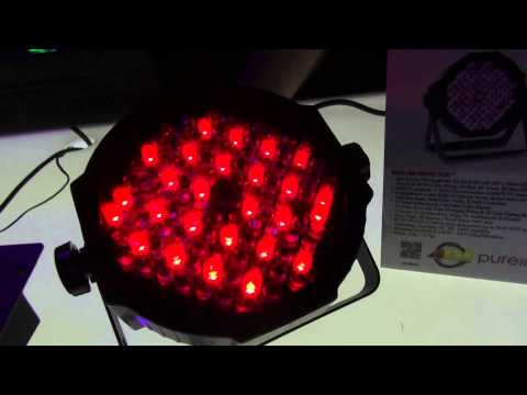 • Slim flat black Par with 107x 10mm LEDs (26 Red, 45 Green, 36 Blue LEDs) + 1 3W UV LED)