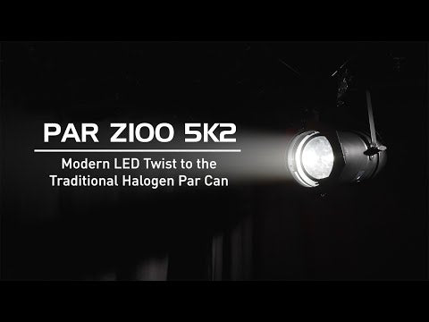 The Par Z100 5K2 combines the aesthetic appeal of a traditional stage par can with the contemporary advantages of LED technology. It runs on a 100-Watt, 5700K Cool White C.O.B. LED engine boasting a CRI exceeding 90. With 5 manually adjustable zoom beam angles, along with DMX In/Out and locking power In/Out, the fixture facilitates the seamless connection of multiple units for permanent or temporary use.