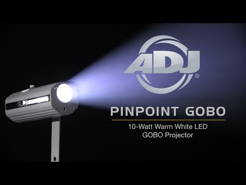 Communicate your message in light! The ADJ PinPoint Gobo is a battery powered GOBO projector powered by a 10-Watt cool white LED. It includes 4 standard removable GOBOs, 5 color gels and a frost filter to defuse the beam for wider washes of light. When the GOBO is remove it may be used as a pinspot to spot tables, decor, architecture or used for special effects.
