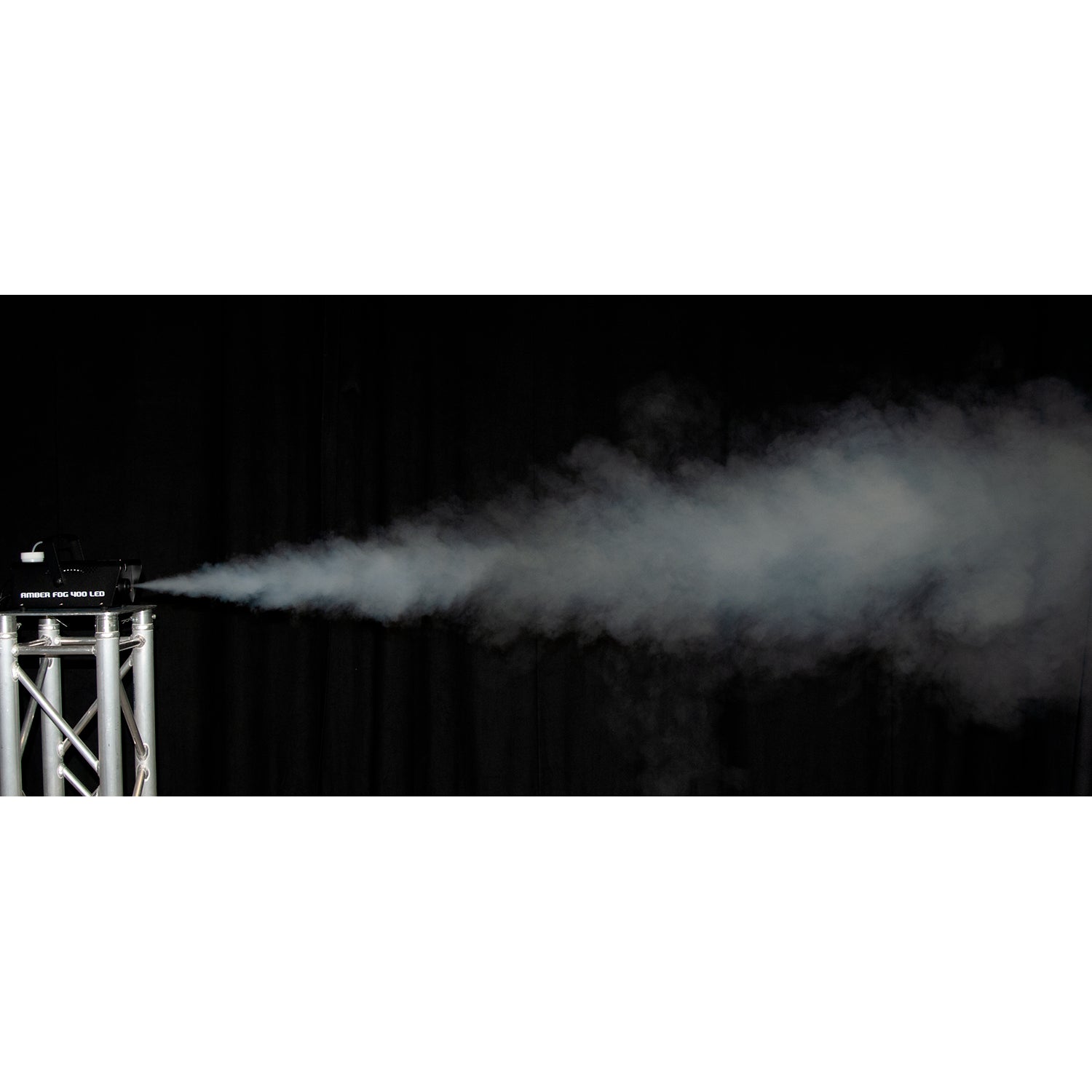 The Eliminator Lighting Amber Fog 400 LED is a unique fog machine that not only produces a rapid, thick cloud of smoke, but it also has three 1W amber LEDs built in to color the fog, similar to a flame effect as it comes out of the machine. Uses standard water-based fog fluid. Includes remote control. Its compact, lightweight and easy-to-use.
