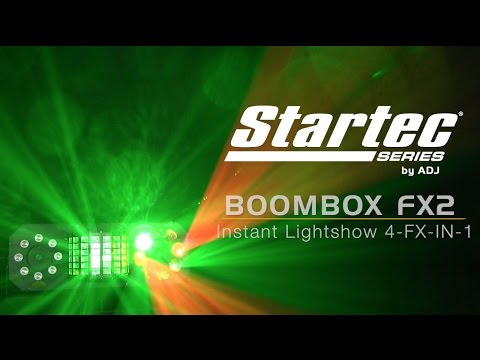 Put some “BOOM” into your lightshow! Create pure lighting excitement for any event with the 4-FX-IN-1 Boom Box FX2. Cover the room in light from the classic Derby effect, paint the walls with GOBO effects, wash the dance floor in colors and mesmerize the crowd with the Galaxian style red and green laser!