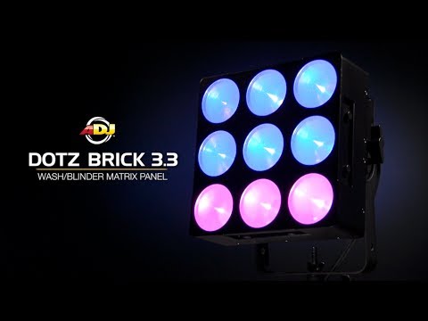 DISCONTINUED PRODUCTGet ready to create the a rich display of RGB mixed color at your next event. With advanced Chip On Board technology the Dotz Brick 3.3 from ADJ allows for a stunning display of Pixel Mapping or Wash effect from 9 powerful LEDs in a 3 x 3 arrangement. With all it's great features like auto run, sound active mode, and built-in programs this DMX compatible LED fixture is easy to use and integrate into any entertainment production. This unit includes individual pixel control in DMX mode allowing you to fine tune your light display to suit any specific needs. Made from high quality materials the Dotz Brick 3.3 is built to last. Despite being high output and durable, this LED fixture is lightweight and will be easy to transport to wherever your next event may be. While portable, the Dotz Brick 3.3 has a high quality and powerful output making it ideal for theaters, venues, and night clubs. Get quality lighting you can trust with the Dotz Brick 3.3 LED Fixture from ADJ.