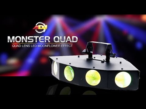 The ADJ Monster Quad is a four lens high output Moonflower effect that is powered by 25 1-Watt RGBWA LEDs and covers a large area of a dance floor and bring pure lighting excitement to any party