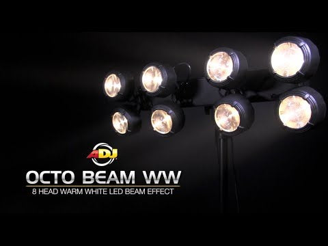 The ADJ Octo Beam WW produces a classic effect with a modern twist! The effect looks like an all white Halogen bulb effect but in essence uses 8x 3-Watt warm white LEDs. It produces sharp, bright beams at a 3.4 degree beam angle. The Octo Beam WW has 3 DMX channel modes (1, 8 or 10), 3 operational modes (Sound Active, Show or DMX modes), LED pulse and strobe effects and 0-100% electronic dimming. The rear control panel features a 4-button LED display menu, 3-pin DMX In/Out connections and IEC In/Out for power linking up to 12 units at 120V or 19 units at 230V operation. This fixture is compatible with the ADJ UC3 easy-to-use controller.