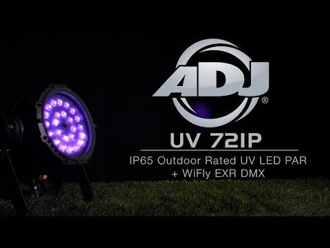 The UV 72IP produces a high intensity ultraviolet light designed for outdoor performance stages, theatrical performances and special effects productions. This all metal, IP65 outdoor rated professional fixture features ADJ’s WiFLY EXR wireless DMX and is powered by twenty-four 3W UV LEDs.